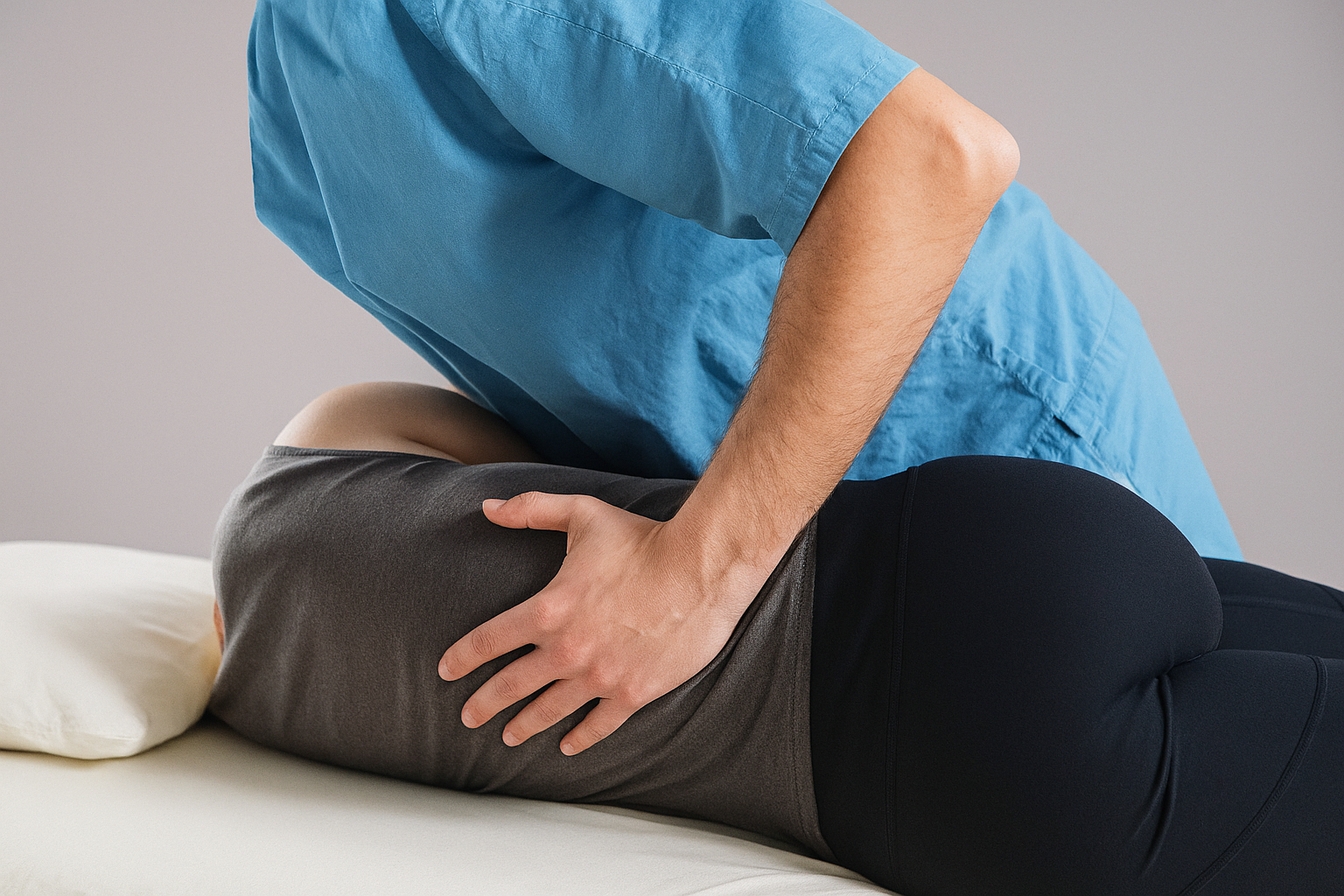 Pelvic Blocking – Gentle pelvic balancing using padded wedges to support alignment.